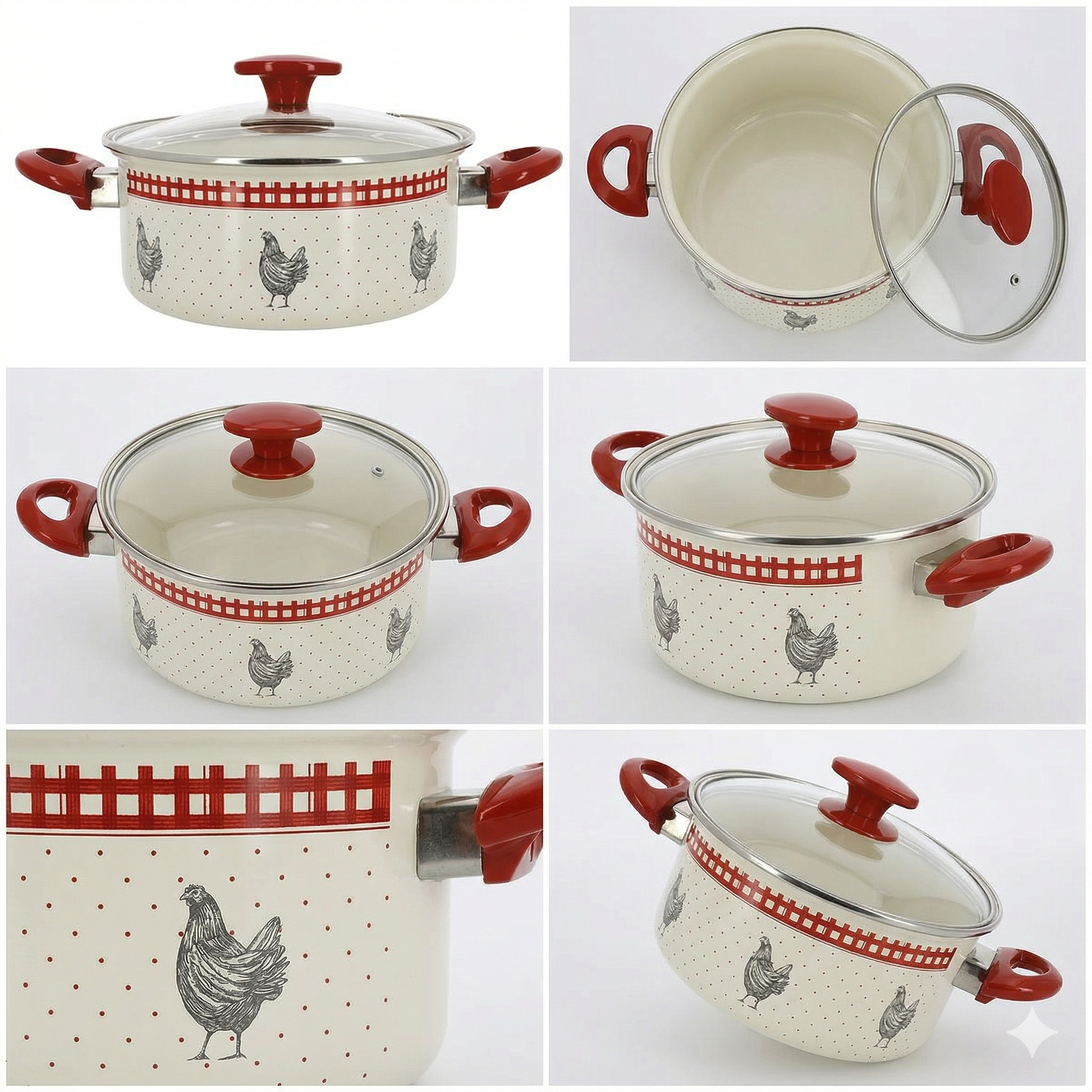 La collection Jolie Cocotte se distingue par ses motifs décoratifs inspirés de la campagne française. Les illustrations de poules apportent une touche de charme et de convivialité à votre cuisine. Ce faitout 24 cm induction ne se contente pas d’être un outil de cuisson performant, il devient également un véritable objet de décoration qui embellit votre espace culinaire.
