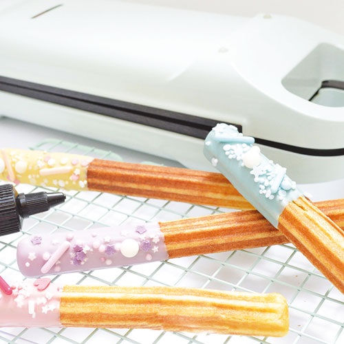 Une fois vos churros cuits (environ 4 à 6 minutes), laissez libre cours à votre gourmandise. Vous pouvez les rouler traditionnellement dans un mélange de sucre et de cannelle, les tremper dans une sauce au chocolat fondu ou les garnir de caramel au beurre salé. Pour les plus audacieux, l'appareil permet également de réaliser des versions salées (parmesan, herbes de Provence) pour un apéritif original et surprenant.